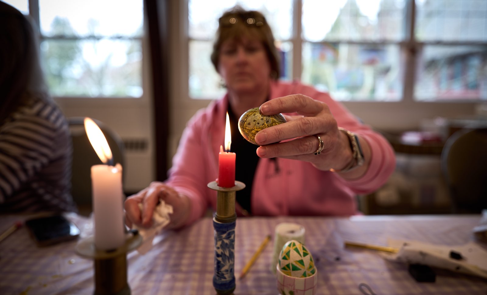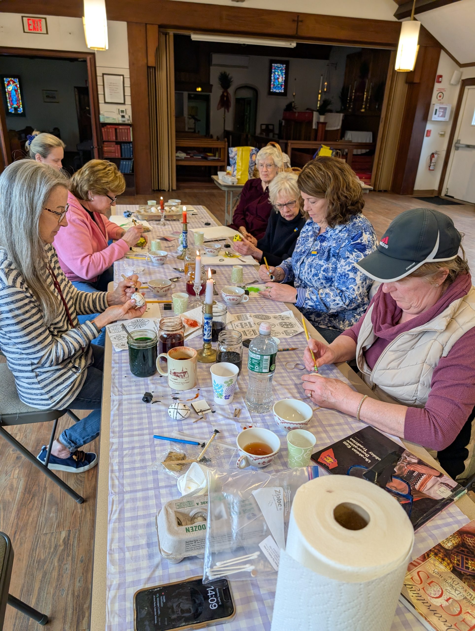New Program — Members and friends recently gathered to decorate Ukrainian eggs – pysanky – with proceeds going to Global Giving Ukrainian Crisis Relief Fund.